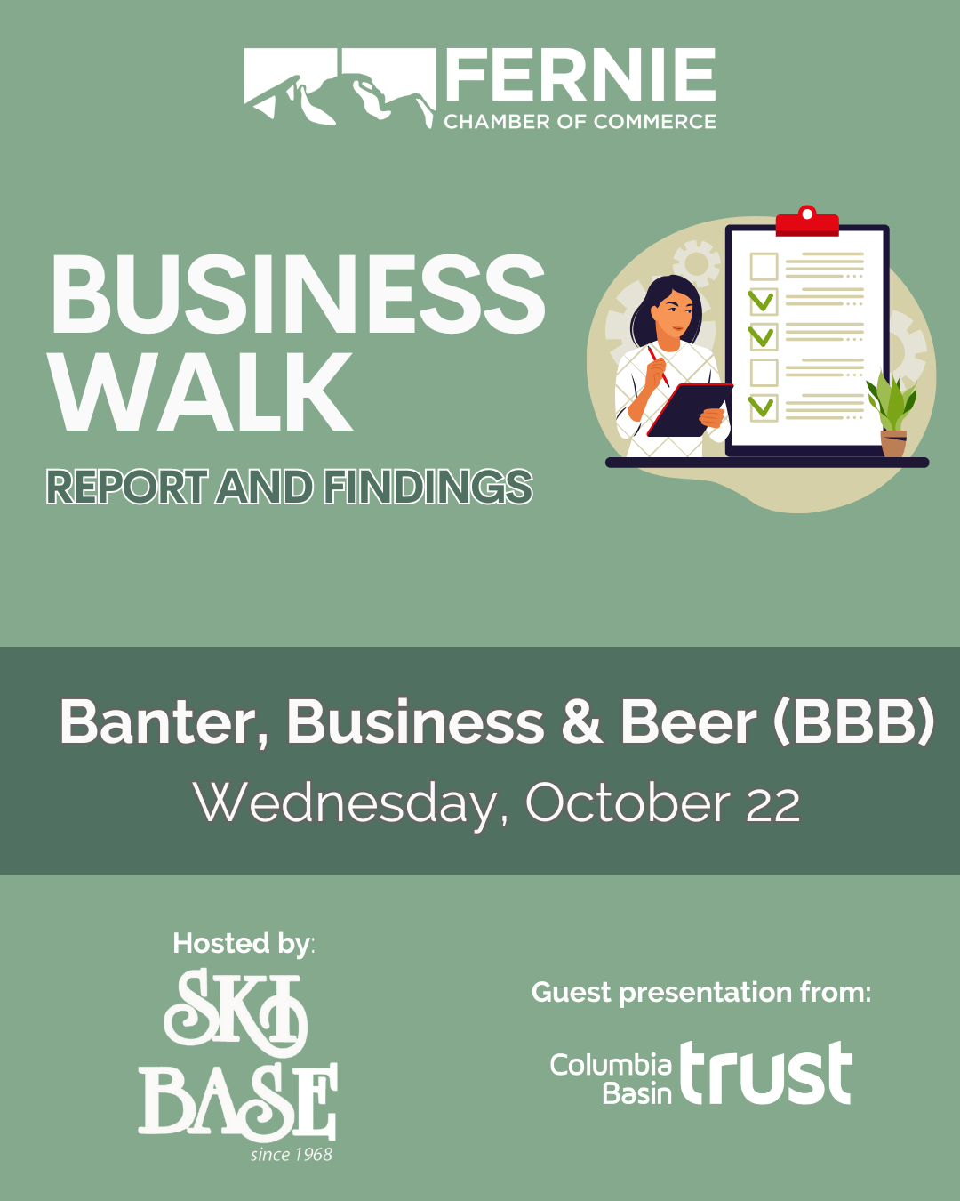 Join the Fernie Chamber of Commerce as we co-host our next Banter, Business & Beer (BBB) networking event hosted by Ski Base.